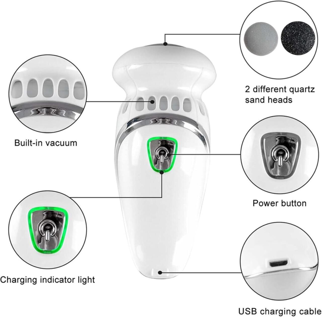 Di adiós a los callos y la piel dura con este removedor de callos eléctrico de alta potencia y tecnología de vacío, diseñado para brindarte una pedicura profesional en casa de manera rápida, segura y sin desorden.